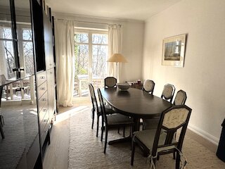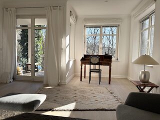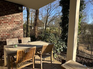Wohnessbereich mit überdachter Terrasse und Garten, Wohnküche, Einbauküche nebst Elektrogeräten, Hauswirtschaftsraum, Schlafzimmer mit Bad Ensuite, 2 Bäder, Granitböden in Bädern und Küche, neuwertiger Dielenboden in gekälkter Eiche, Fußbodenheizung, Landhaustüren, Holzfenster, abschließbare Fenstergriffe und -riegel, Fliegengitter in den Schlafzimmern, Stuckleisten, Hamburger Fußleisten, Gardinenstangen.